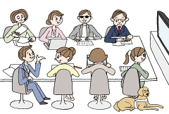 参加者はモニター(複数名)、ディスクライバー、アドバイザー、監修ほか関係者がひとつのテーブルを囲んで意見交換します。